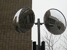 Обзорное сферическое зеркало имеет небольшой вес, благодаря отсутствию задней стенки, и компактный размер – его диаметр 430 мм. Подходит для оснащения небольших торговых объектов – мини-маркетов, магазинов при АЗС и аптек. Подходит для проходов между стеллажами, для касс и углов помещения. Если правильно расположить несколько зеркал, можно достичь 100 видимости торговой площади. Зеркало не запотевает, не бьется и не тускнеет. Поставляется в комплекте с гибким кронштейном чёрного цвета.