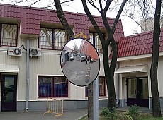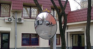 Обзорное зеркало безопасности имеет компактный размер, диаметр составляет 300 мм. Большая высота выпуклости обеспечивает широкий угол обзора. Зеркало безопасности изготовлено из ударопрочного пластика, не запотевает, не бьет и не тускнеет, имеет легкий вес из-за отсутствия задней стенки. Кант исполнен в чёрном свете.